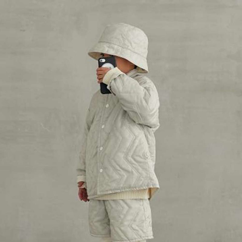 ジグザグステッチのキルティングと、マットな無地素材のリバーシブル仕様です。