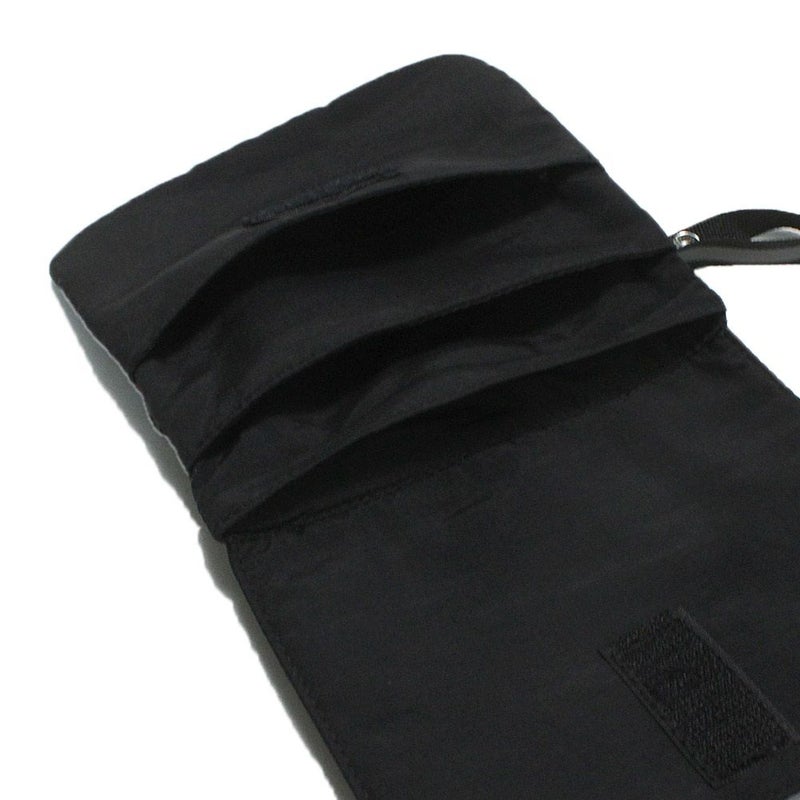 ボトムのウエストにひっかけて使う多重移動ポケット。