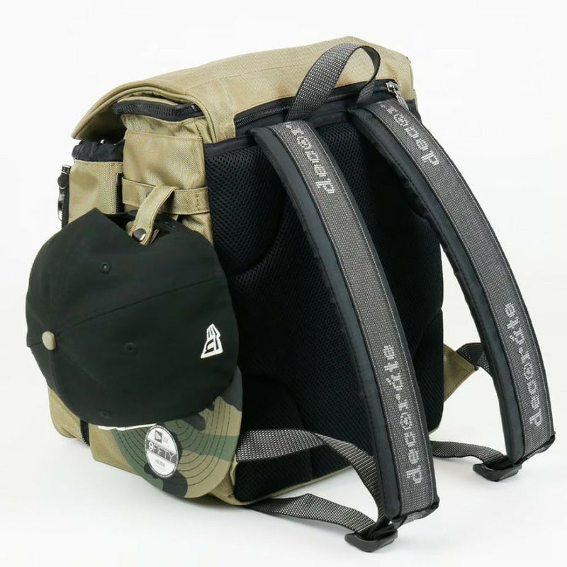 右サイドには、キャップなどの小物を留めることができるストラップも付属しています。