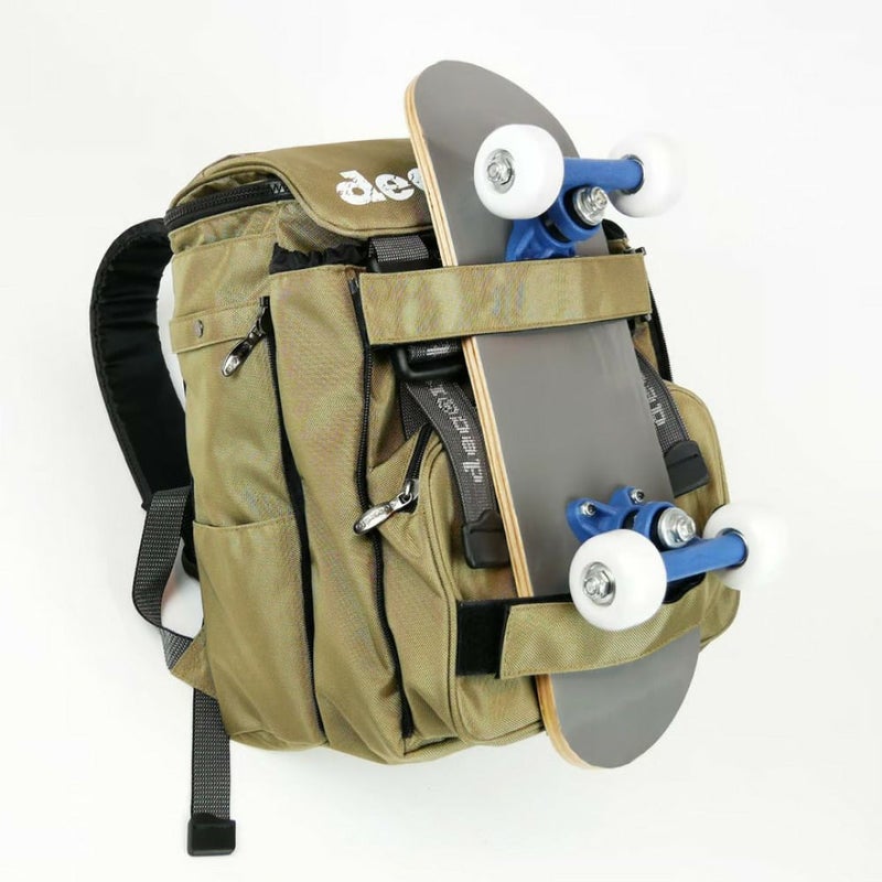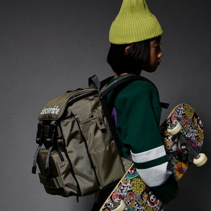 外側の上下2本のボードストラップにスケートボードをセットできるので、スケボーキッズには最適!