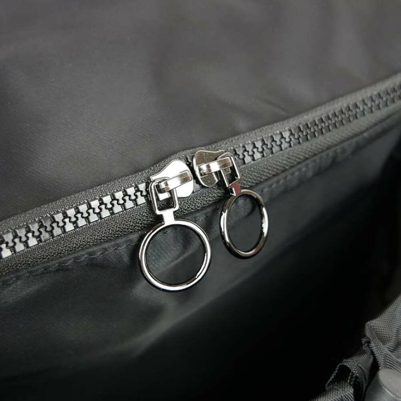 サイドのファスナーでサブコンパートメントの容量を調整可能。