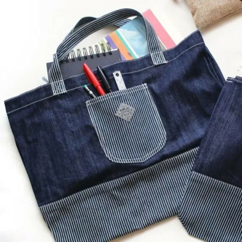 ヒッコリーで切り替えたのデニムのトートバッグ。