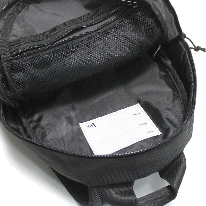 メインポケット内側にはお名前や住所が記載できるタグ付き。