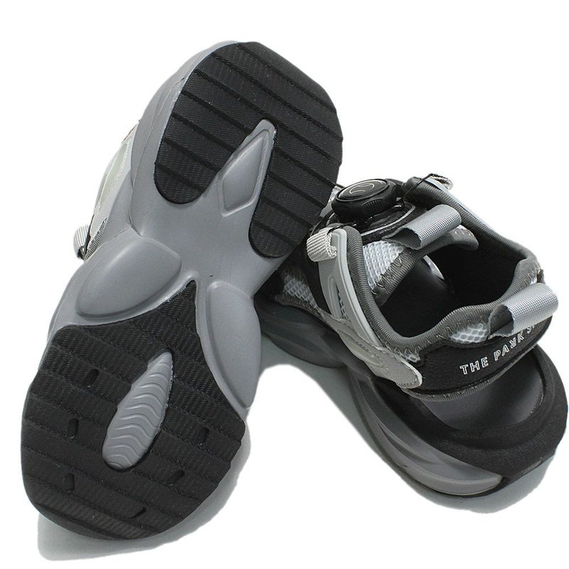 アウトソールには10mmの溝が段階的に刻まれ、滑りにくい。