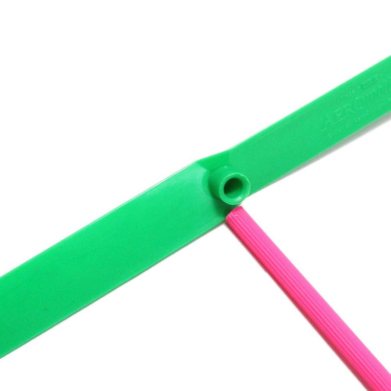 プロペラにダボを差し飛ばしたい方向に向けてから、右手を押し出し回転させて飛ばします。