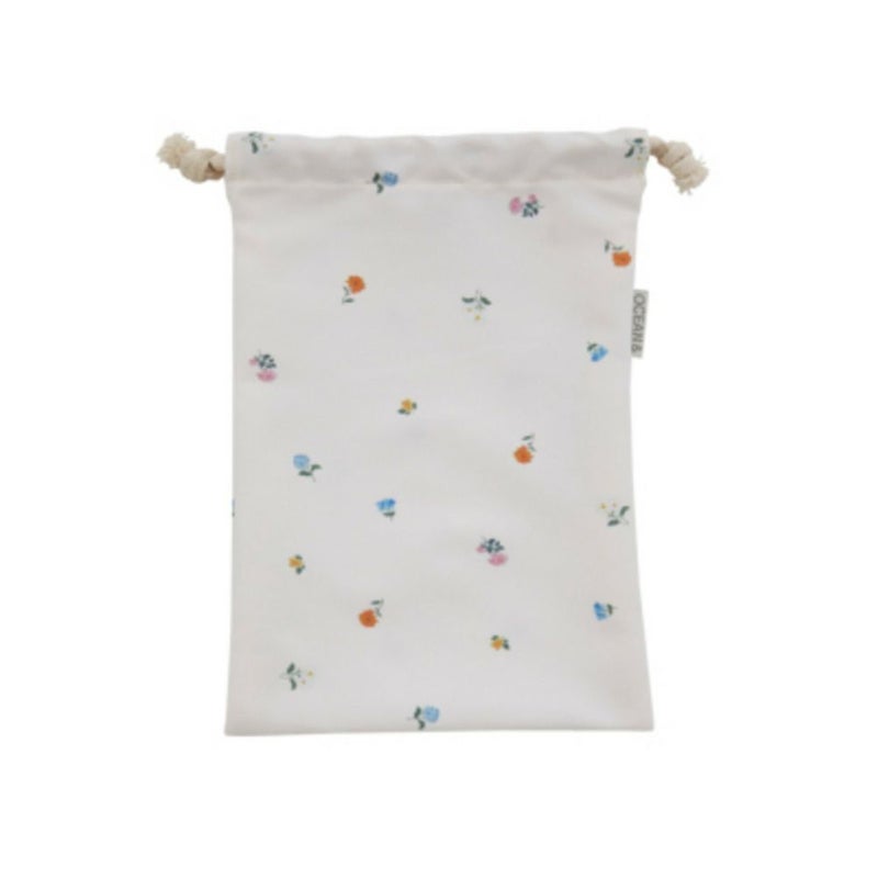 ナチュラルなカラーリングと総柄デザインが魅力の巾着袋。