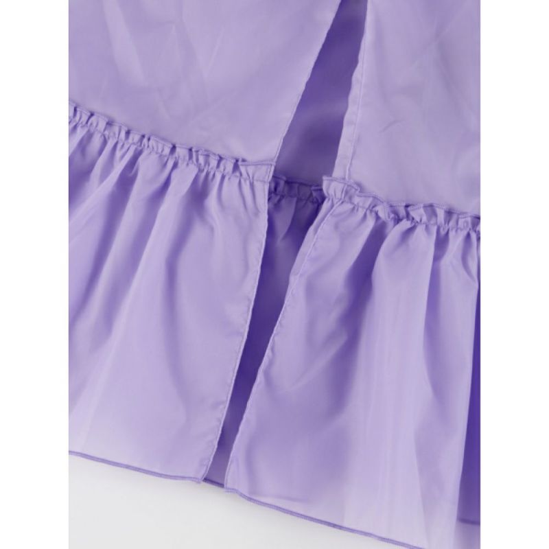 フード口と裾にあしらった、ギャザーたっぷりのフリルがポイント。