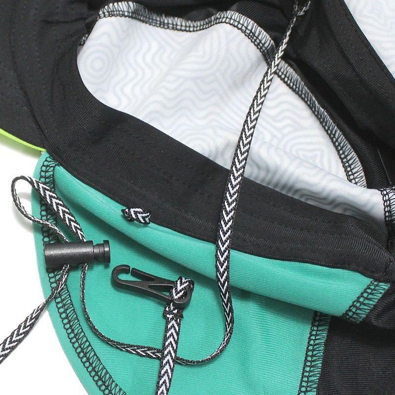 実用性抜群な首元の日除け&顎ストラップ付き。