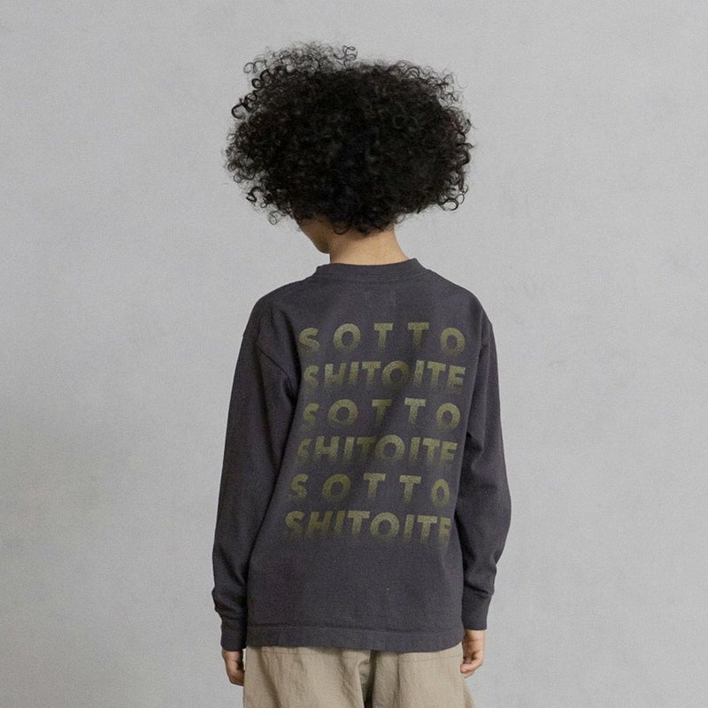 ユニークなグラフィックが目を惹く、製品染めの長袖Tシャツ。