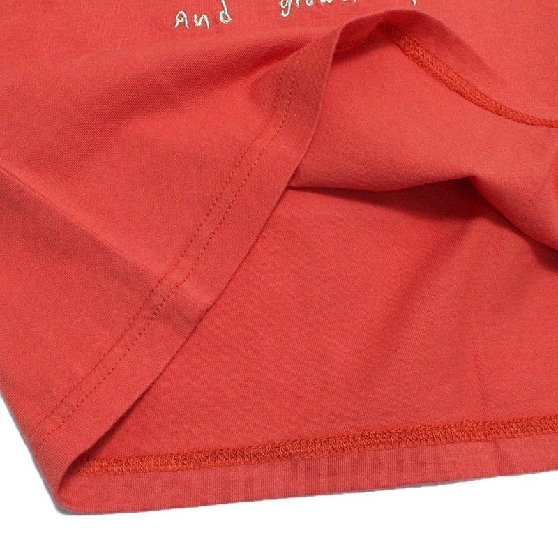 フロントにポジティブなメッセージを刺繍したTシャツ。