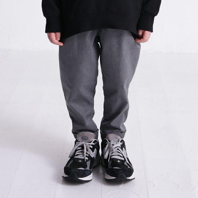 膝から裾へは強めのテーパードを入れることで立体的で存在感あるシルエットに。