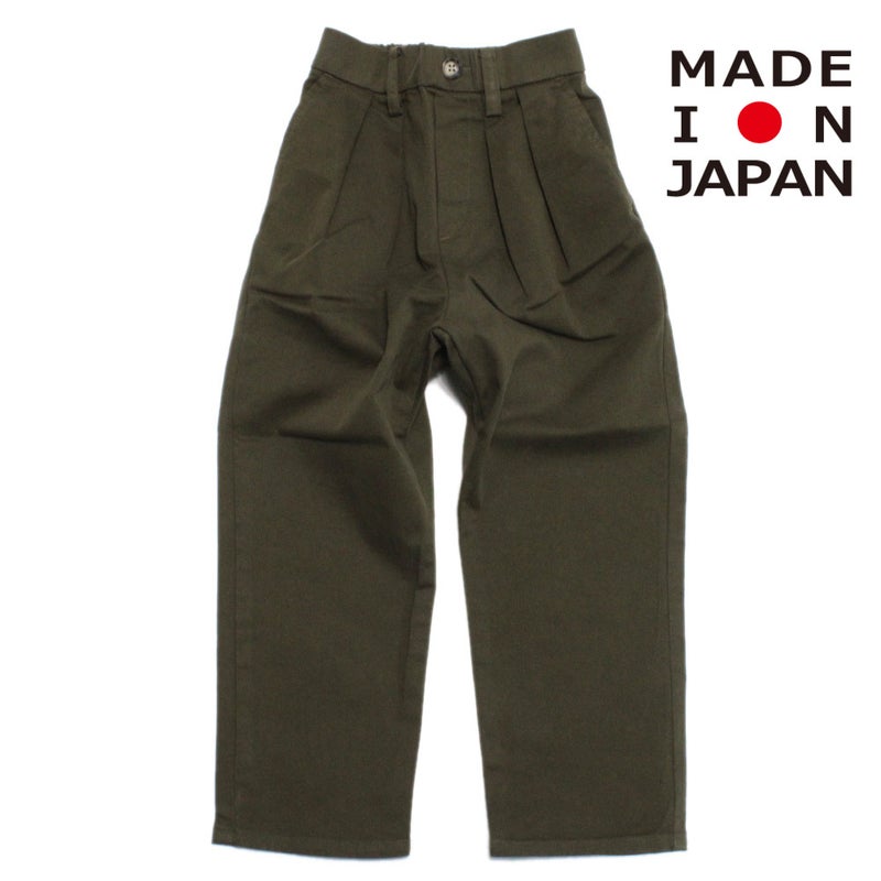 ハリ感のあるチノ素材を使用した日本製のパンツ。
