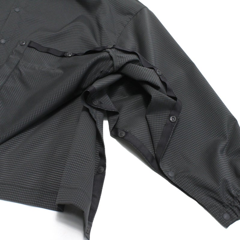 ポンチョの様に脇から袖下はドット釦で開閉できるので、より通気性が高く、蒸れにくくなっています。