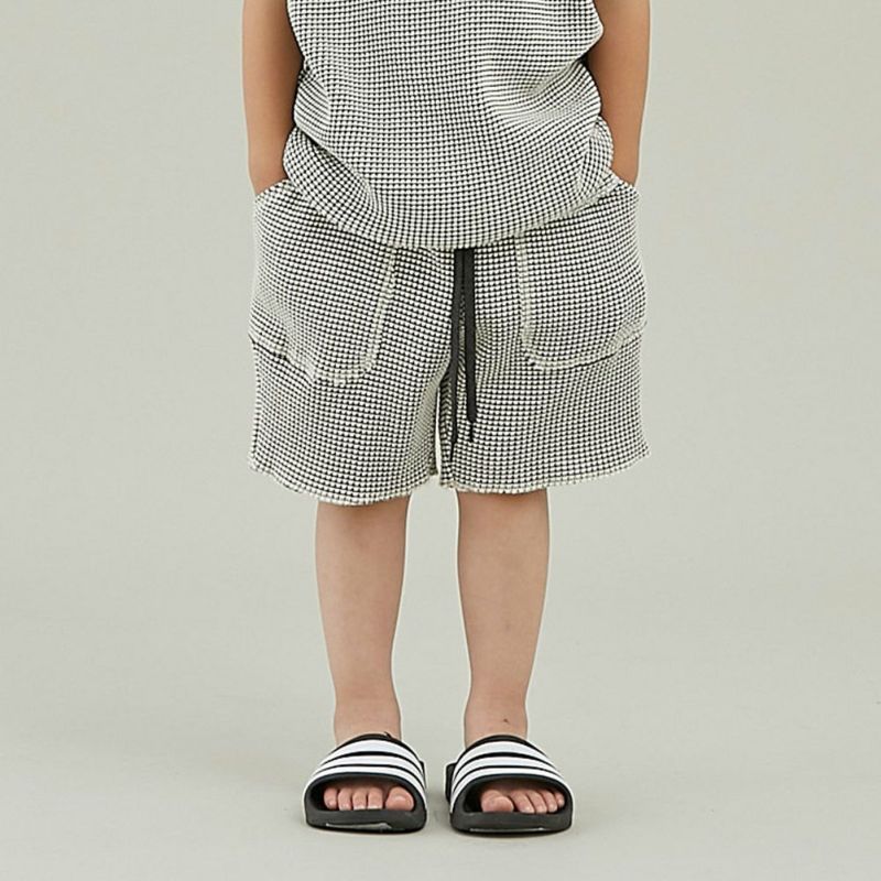 細かいチェック柄に見えるバイカラーが新鮮なショートパンツです。