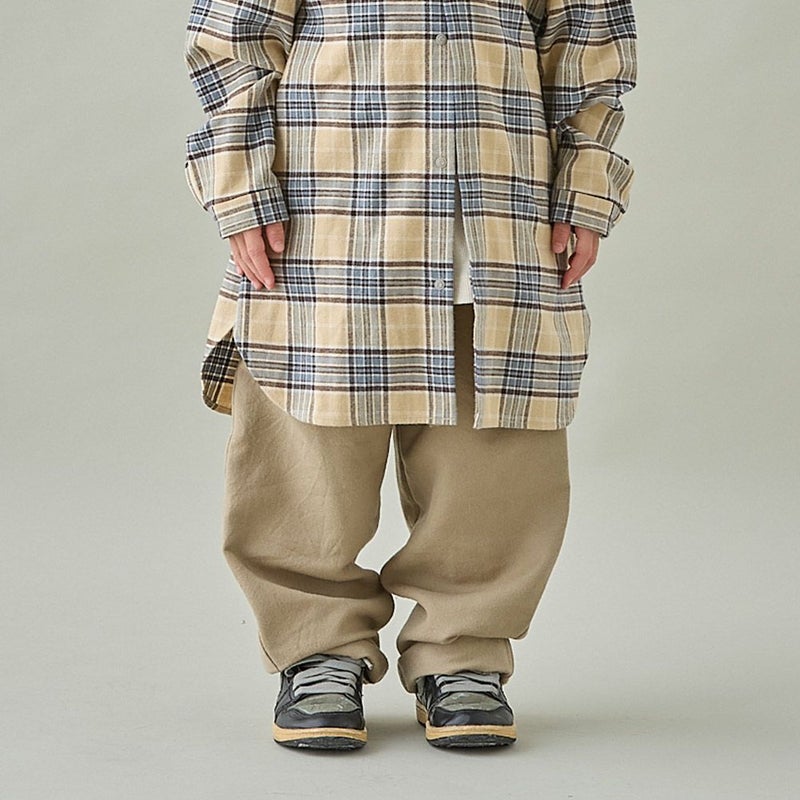 [マウンテン] wool cotton twill loose パンツ ベージュ