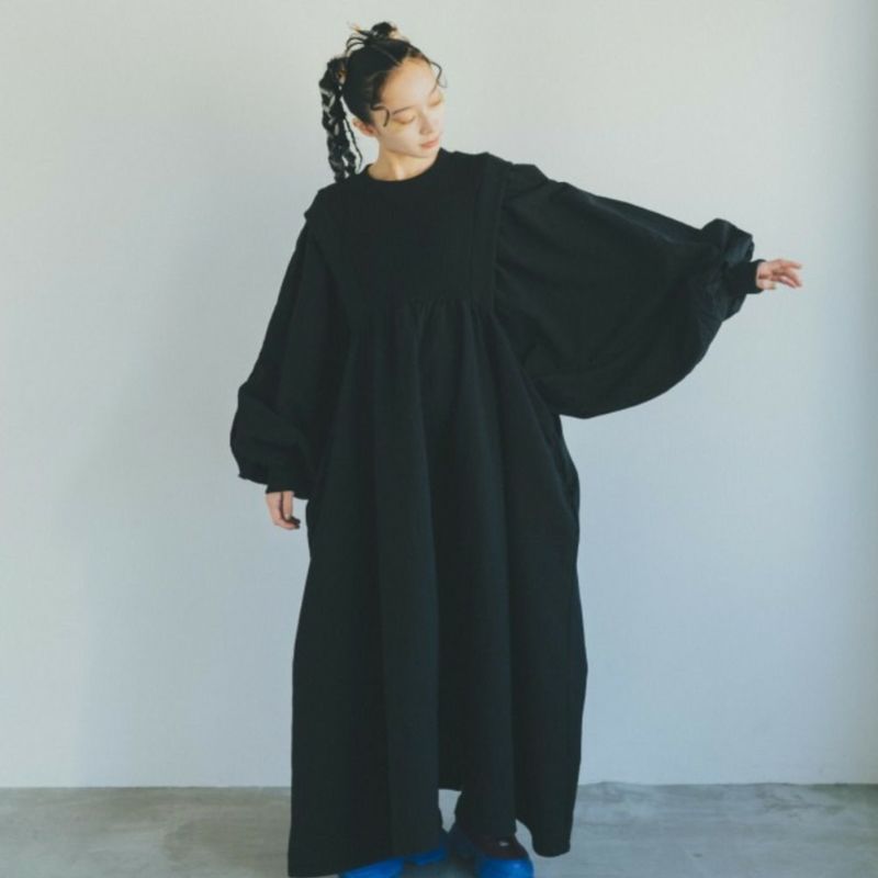 6. [ヌヌフォルム] ワッフルギャザーワンピース ブラック