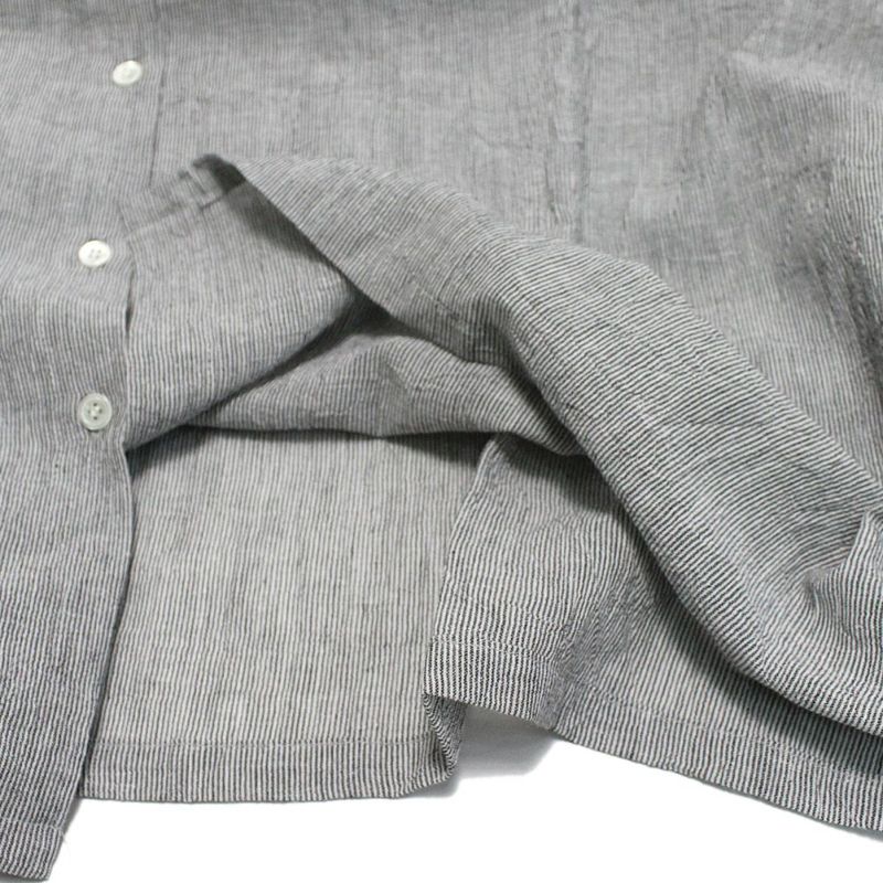 リネン混の綿麻ワッシャー生地で、春夏にぴったりなネックギャザーシャツです。