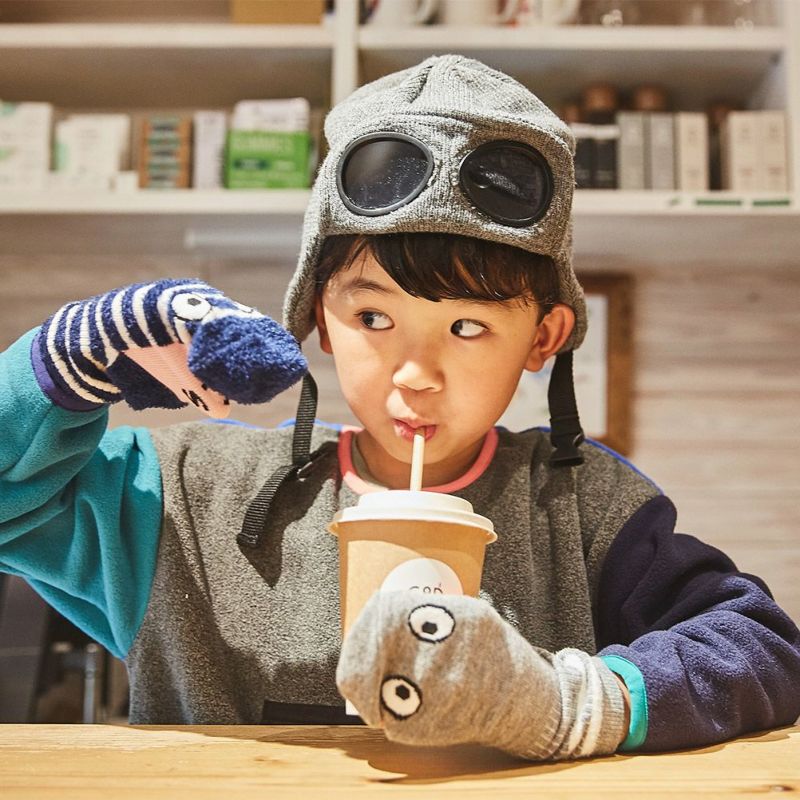 折り返し部分をおろして着用するとゴーグルになるニットキャップ。