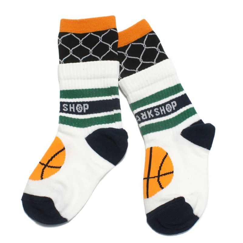 履き口がバスケットゴールネット柄のレイヤードラインソックス。