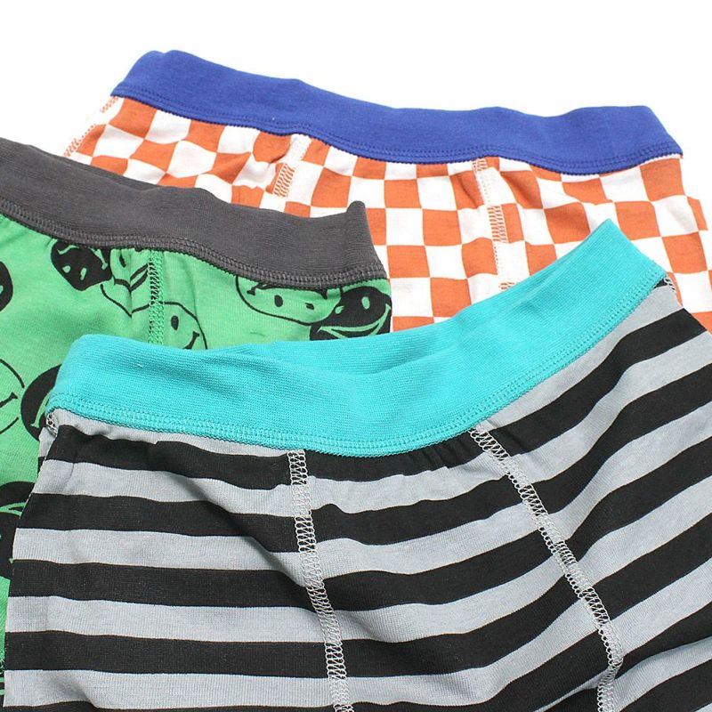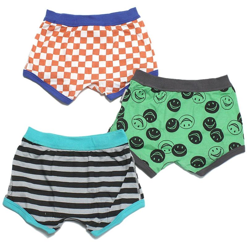 チェッカー、ボーダー、スマイル柄のボクサーパンツが3枚1組に。