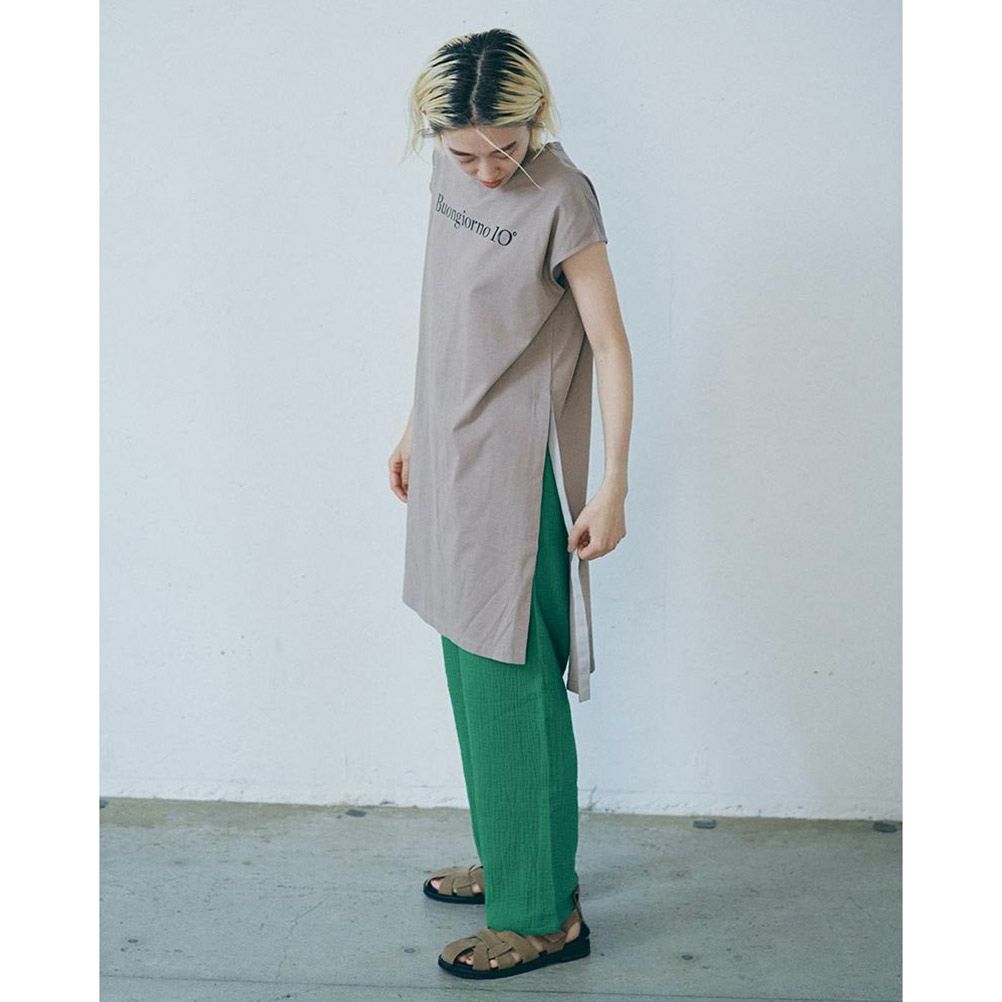 [セスタヴォカーレ] スリットロングTシャツ ブラウン