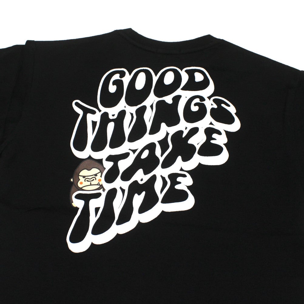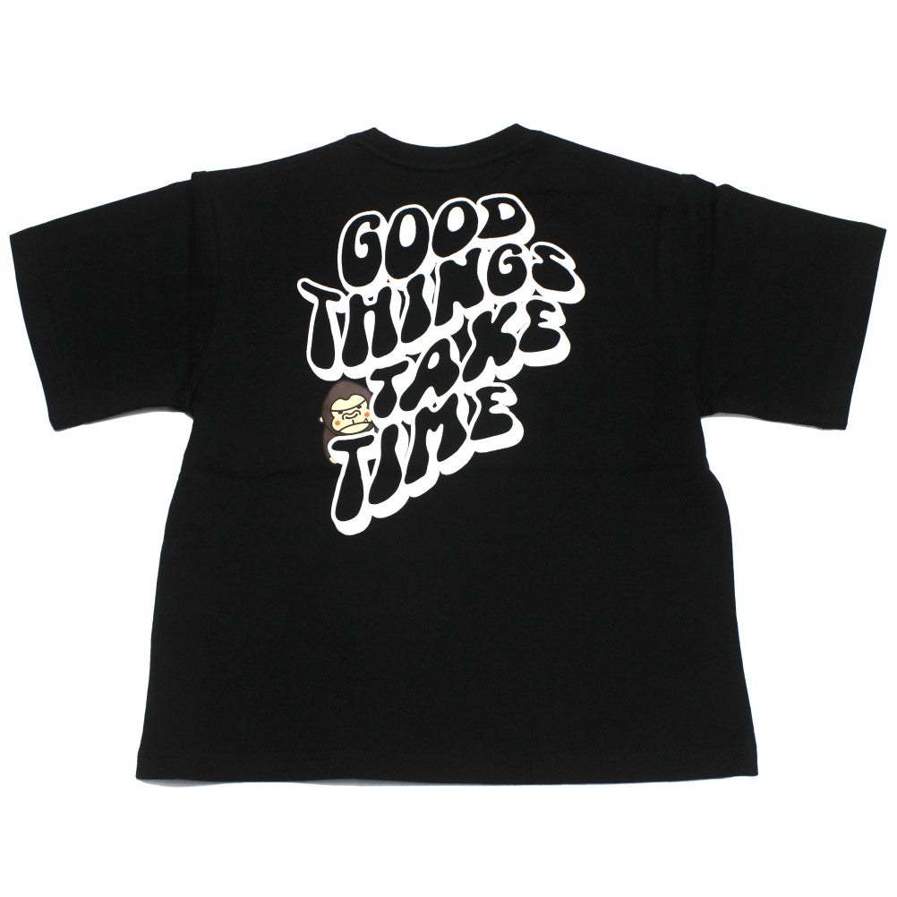 [エクストララージキッズ] ファニーゴリラバックプリント半袖Tシャツ クロ(80)
