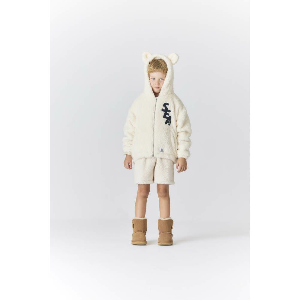 まるでテディベアの様なアイコニックなミミ付きフーディがポイント。