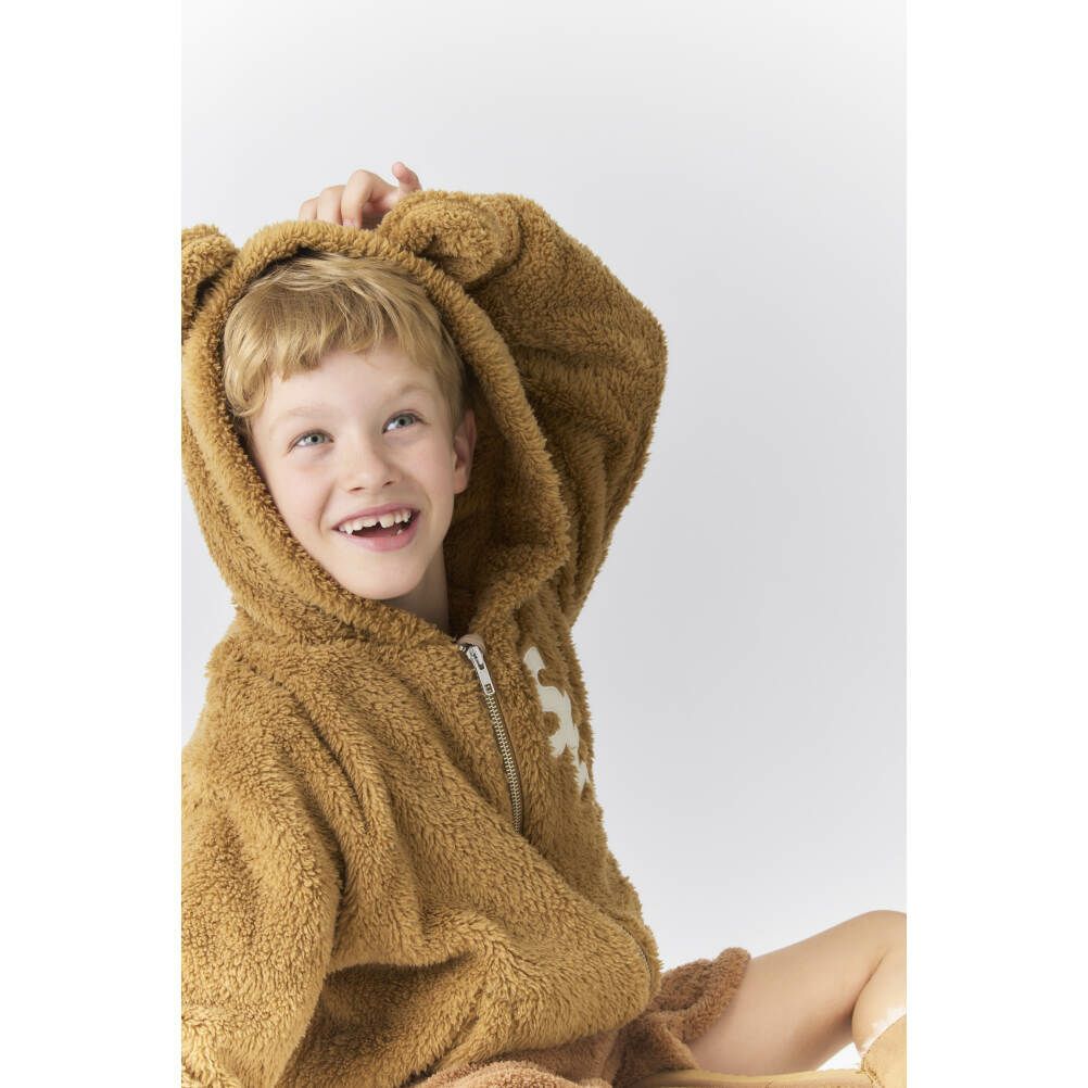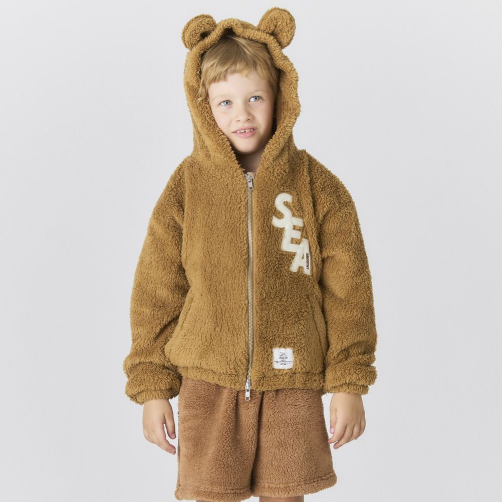 まるでテディベアの様なアイコニックなミミ付きフーディがポイント。
