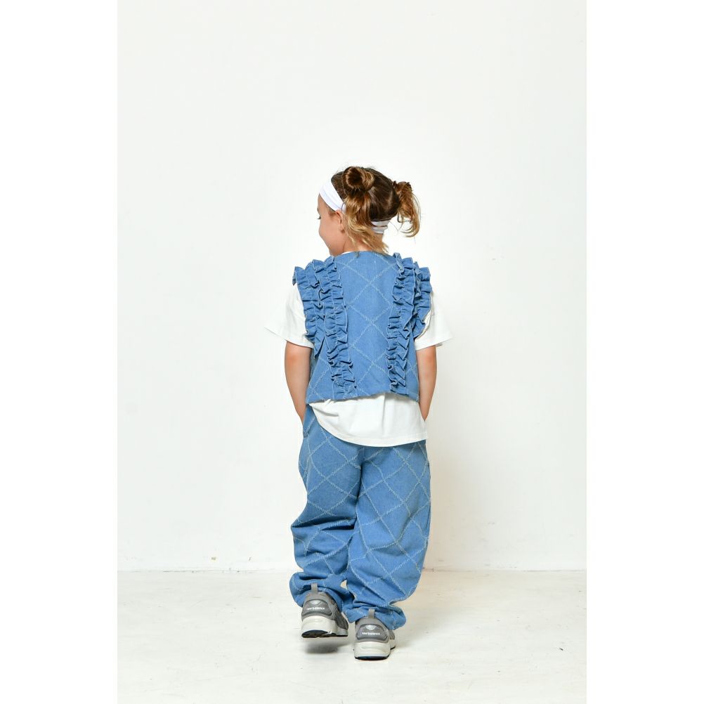 [オフィシャルチーム] カットデニムワイドサルエル ブルー