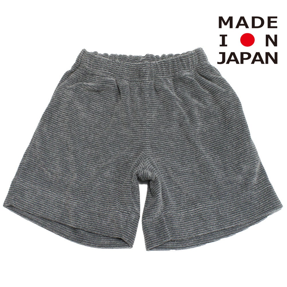 [マウンテン] pile border ハーフパンツ エクリュ×チャコール