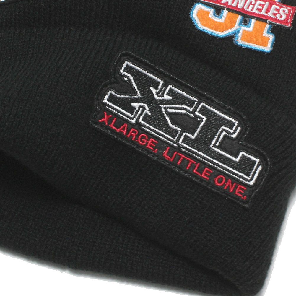 [エクストララージキッズ] ワッペンニットキャップ クロ(80)