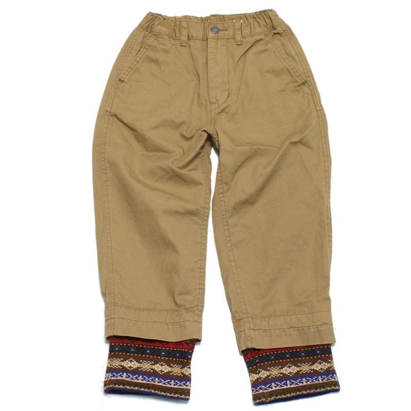 チノパン裾に取り外しが出来るニットを付けたリメイクパンツ。