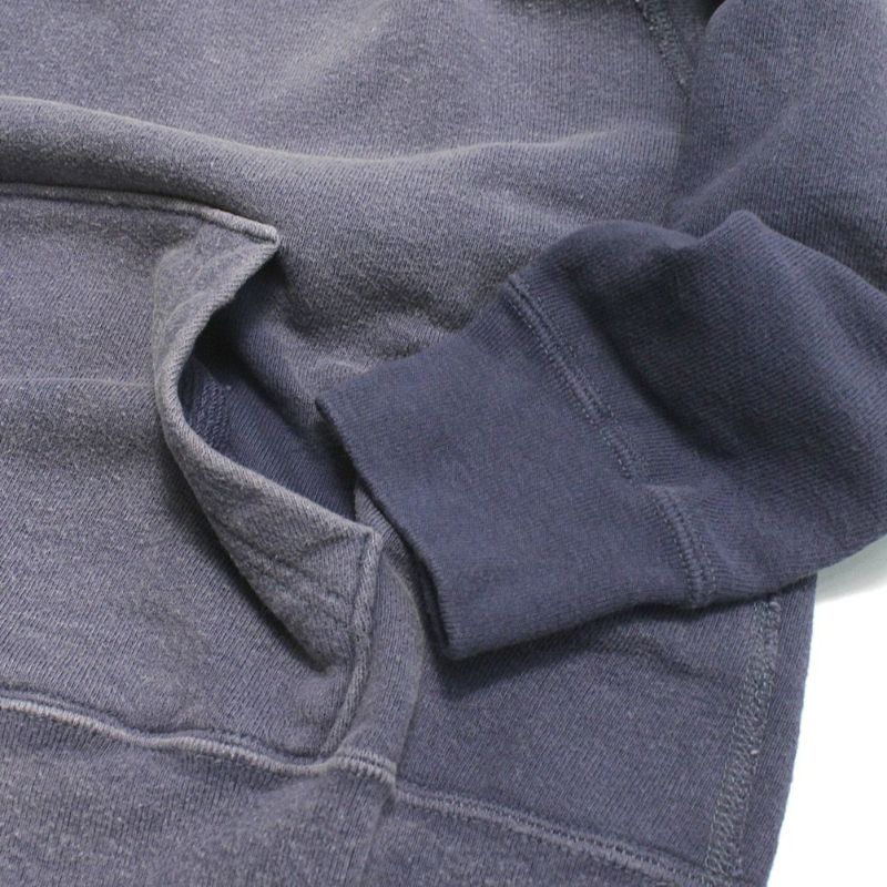 本格的なヴィンテージ加工を施したプルオーバーフーディ。