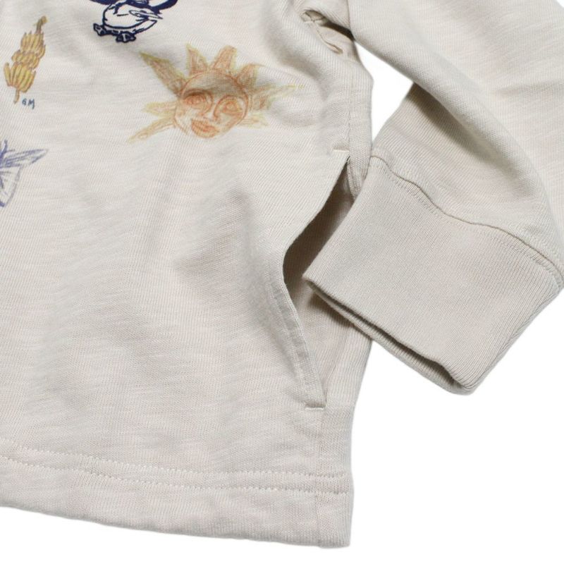 全体にラクガキプリントを配したあたたかみのあるデザインです。