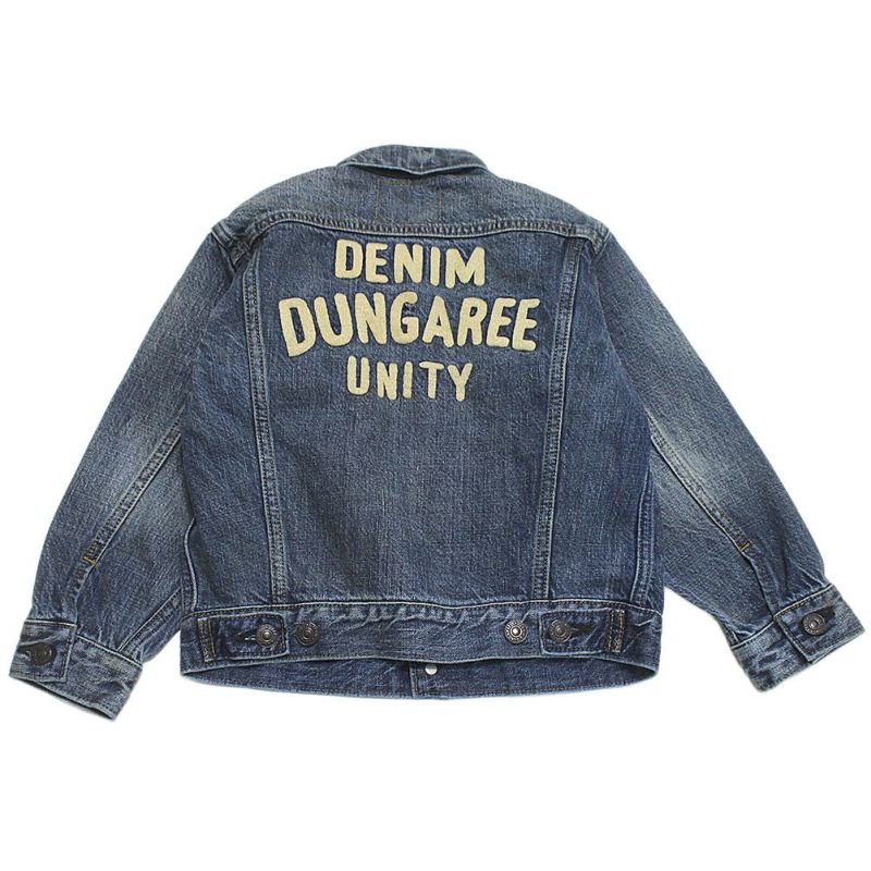 背面にロゴを大きく刺しゅうしたベーシックなデニムジャケット。