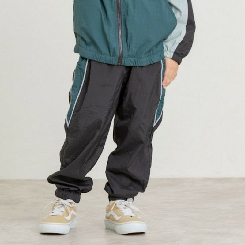 裾にゴムを通しすっきりととおしたジョガーデザイン。