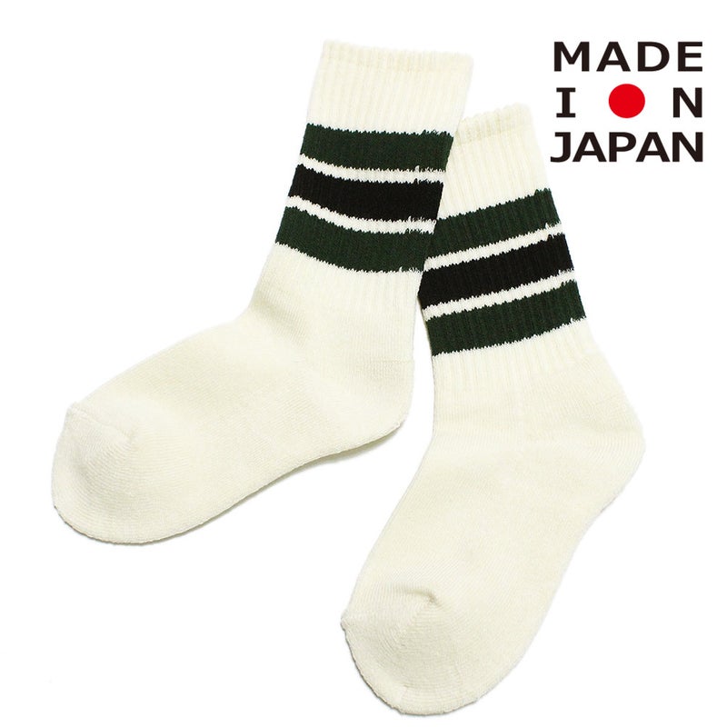 穿き口にデザインされた3本のラインが特徴のクルー丈ソックス。