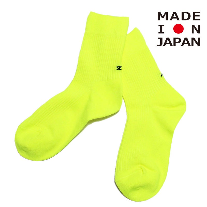 目を惹くネオンカラーのクルー丈のソックス。