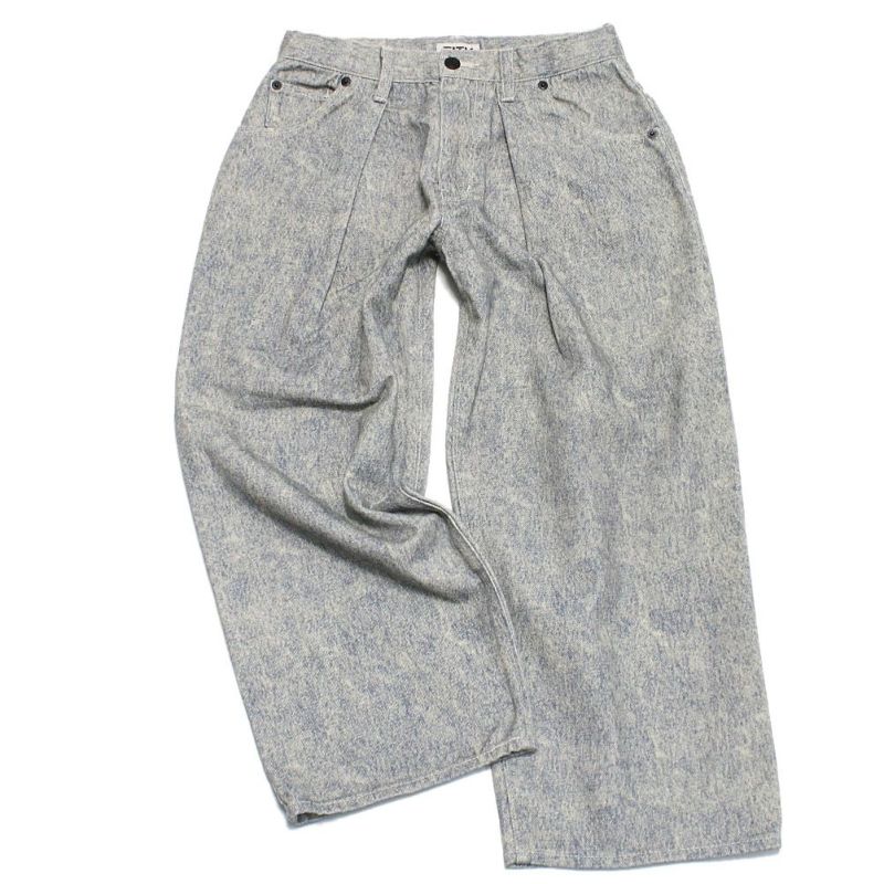 ワイドシルエットのパンツ。