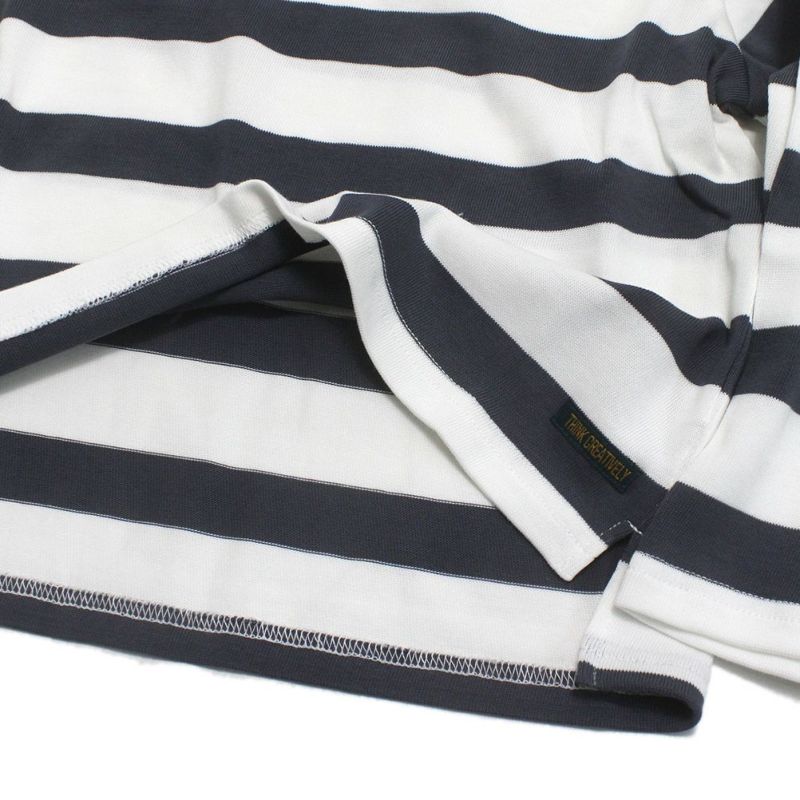 生地はボーダーのピッチや色にこだわった先染めボーダー天竺を採用。