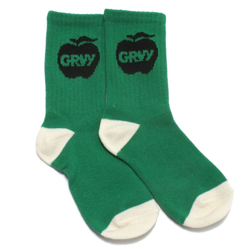 GROOVY定番モチーフのリンゴ+ロゴ入りのソックス。