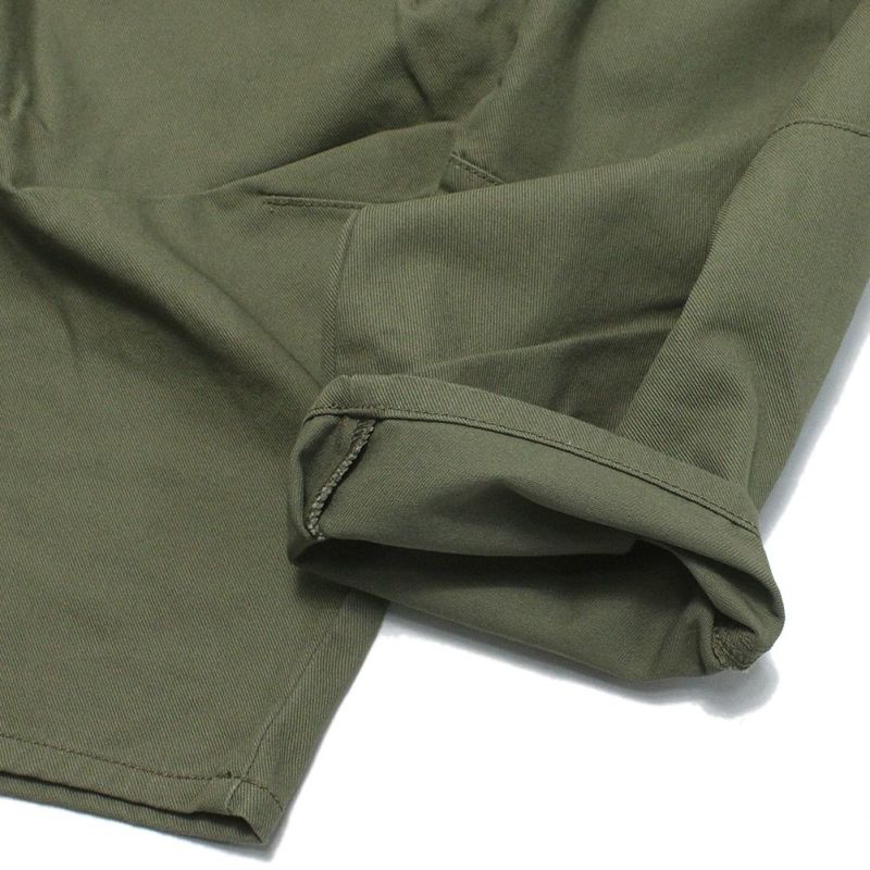 綿を強撚した毛羽立ちの少ないドライタッチな中肉厚のツイルを使用。