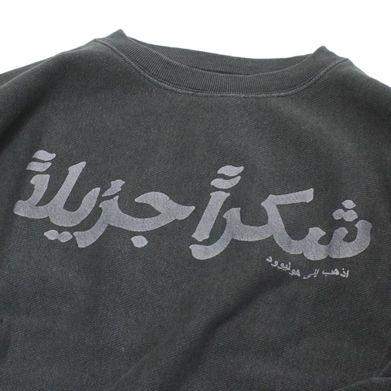 それぞれのボディーにアラビア語、英語、タイ語のありがとうをプリントしたスウェット。
