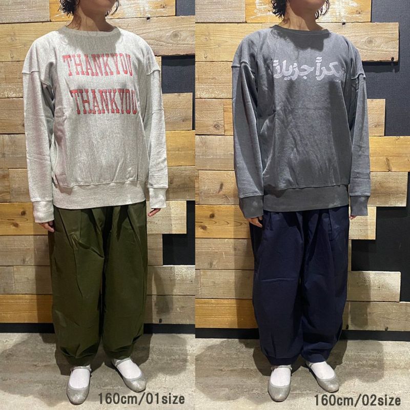 それぞれのボディーにアラビア語、英語、タイ語のありがとうをプリントしたスウェット。