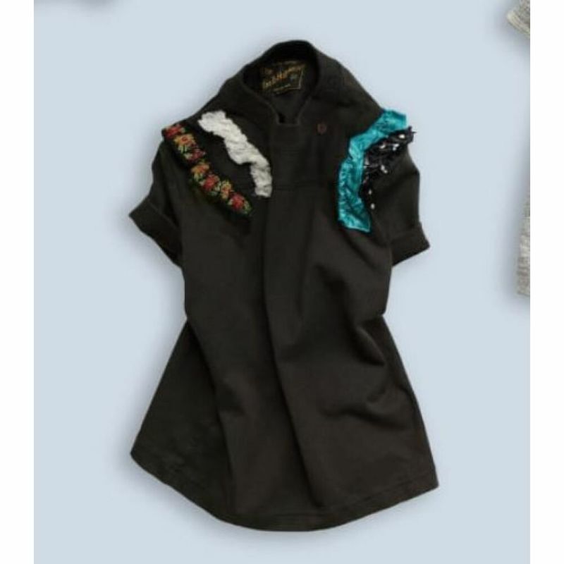 シンプルなフットボールTシャツに、フリルを叩き付け。