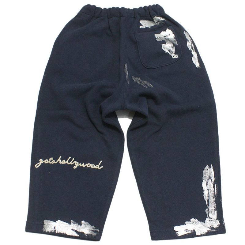 キラリと輝く箔プリントが個性的なスウェットパンツ。