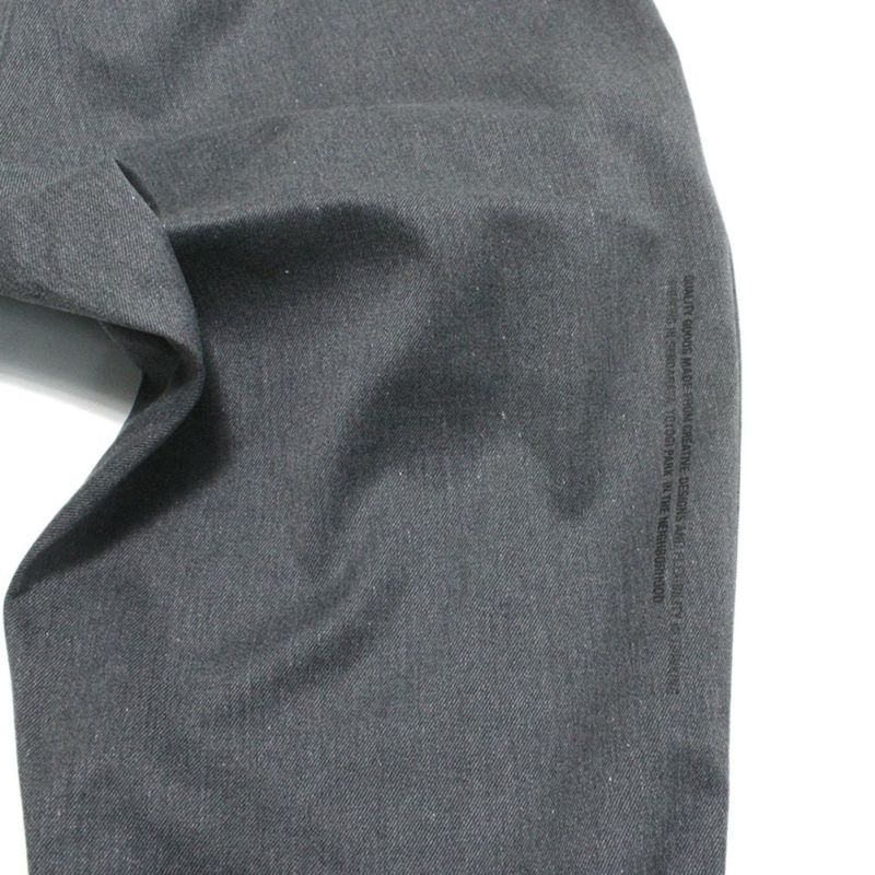 膝から裾へは強めのテーパードを入れることで立体的で存在感あるシルエットに。