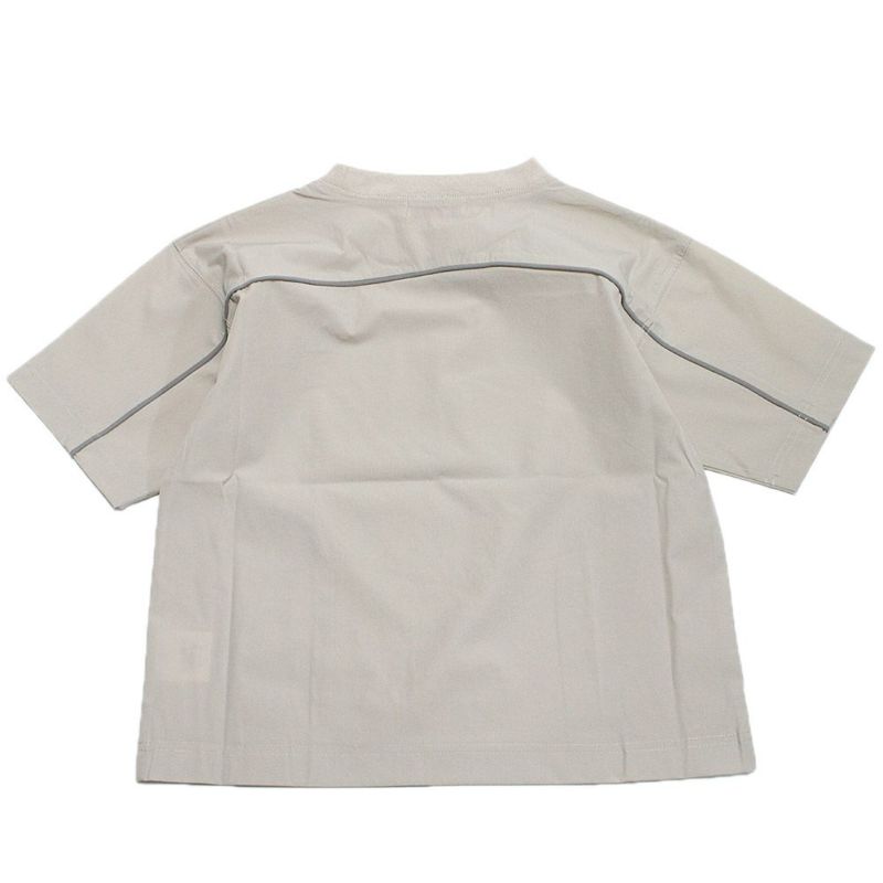 袖先から後ろ身頃に縫い込んだ配色のテープがスポーティなイメージに。配色は控えめにしているのでタウンユースもオススメです。