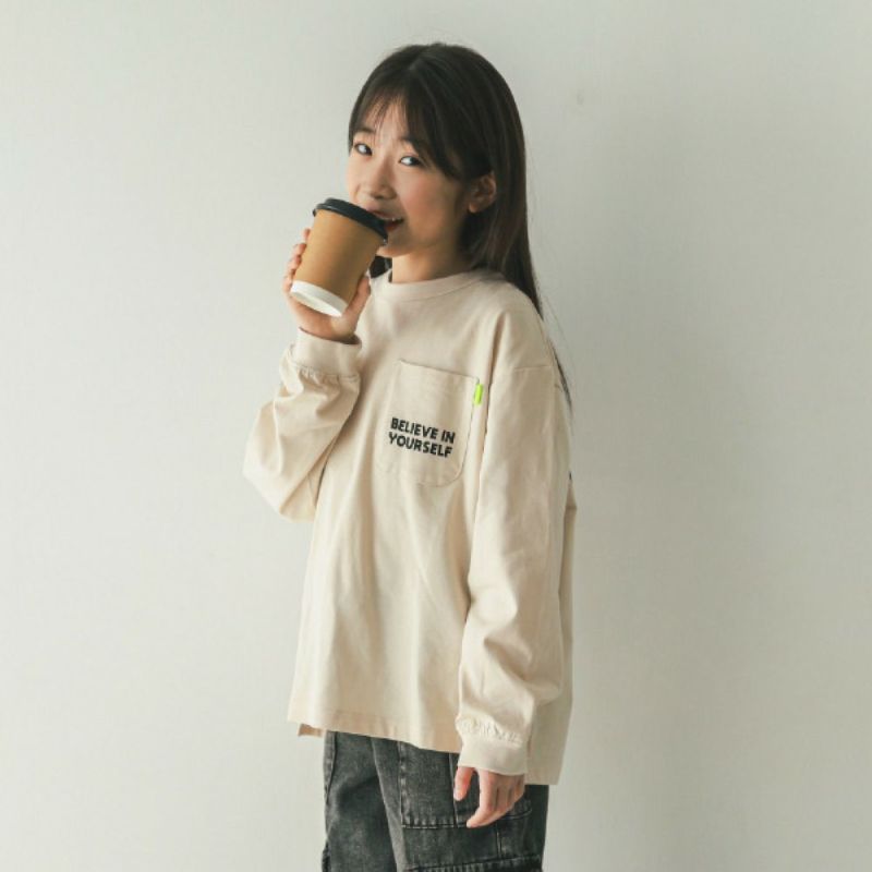 バックのカラフルなロゴグラフィックが目を惹く長袖Tシャツです。