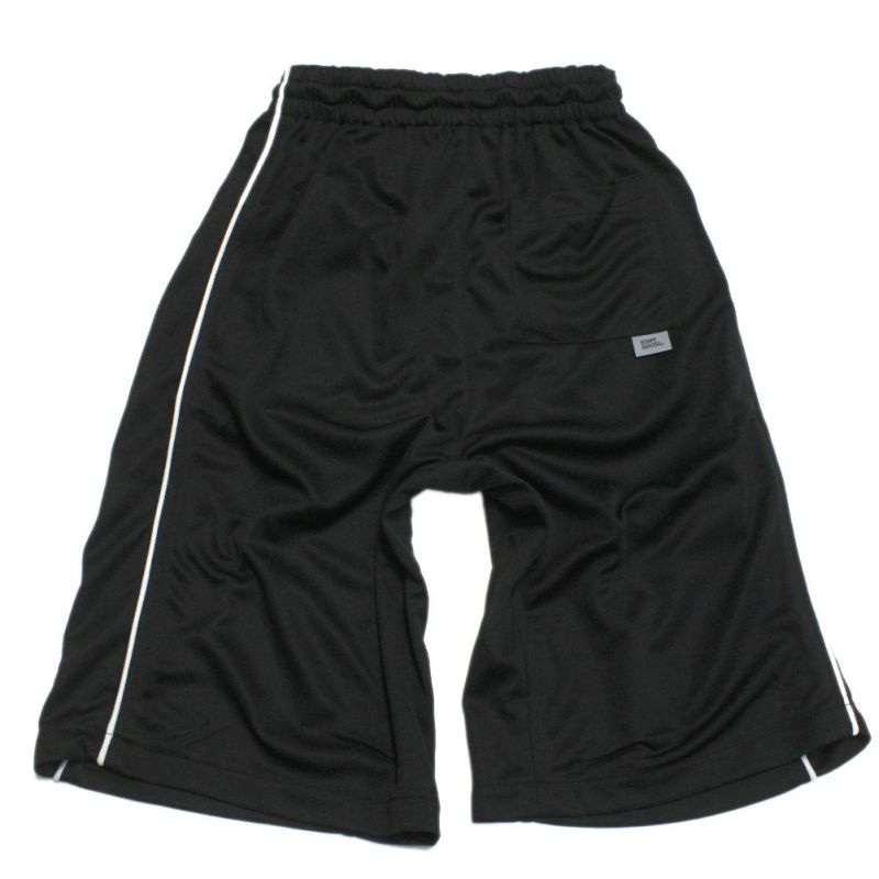 軽量なジャージ素材を使用し、ハードな動きの時もズリ下がらないドローコード仕様。